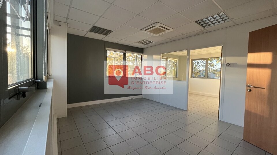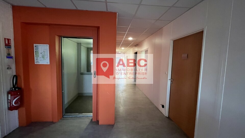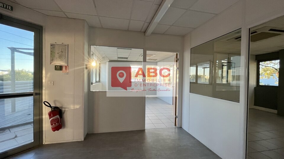 RARE : Plateau de bureaux prêts à l'emploi avec terrasse privative d'environ 90 m² environ, ascenseur privatif, cuisine privative, sanitaires et douches privatives à louer à Castelnau-le-Lez, d'une surface d'environ 281 m² situés en R+1 aménagés, cloisonnés en 7 bureaux, 1 salle de réunion et 1 acceuil, 15 places de stationnement privatives :
