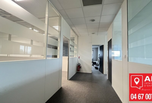 Dans un immeuble de standing, plateau de bureaux à louer d'environ 231m² au RDC, et au cur du parc de l'aéroport, zone d'activité tertiaire très dynamique de la Métropole.
