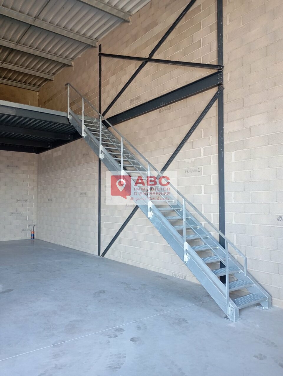 - 87m² env en Mezzanine avec escalier métallique posé.