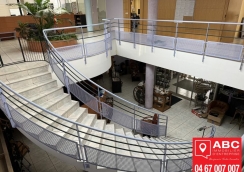 Les bureaux, d'une surface d'environ 875 m², sont répartis entre rez-de-chaussée et R+1, offrant des espaces de travail confortables et fonctionnels.